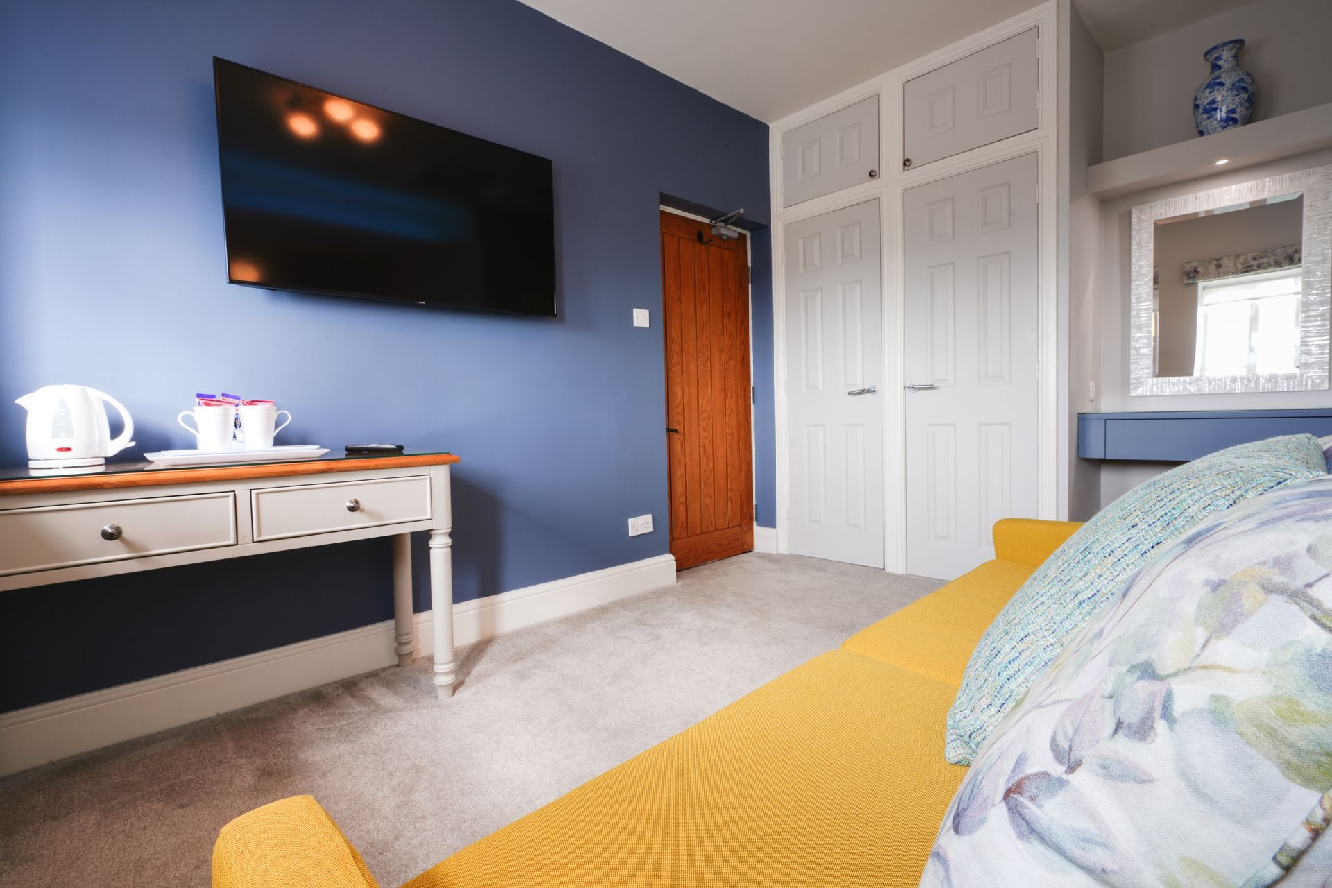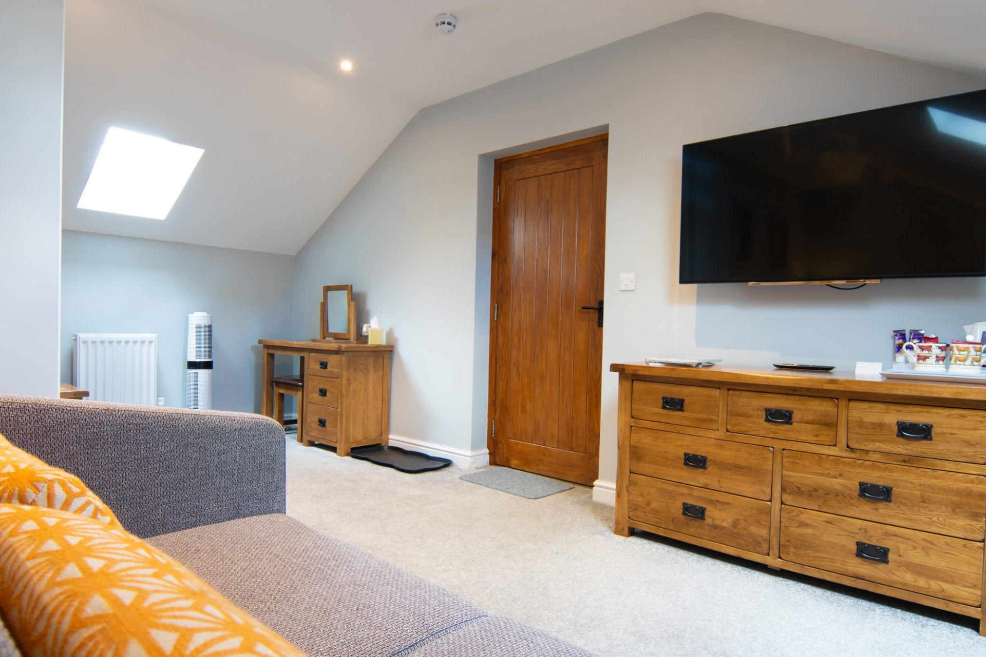 A King-Deluxe room with shower ensuite private bathroom. Sleeps up to 2 in our spacious room with flat screen TV, sofa, hospitality and a large en suite with separate bath and shower.